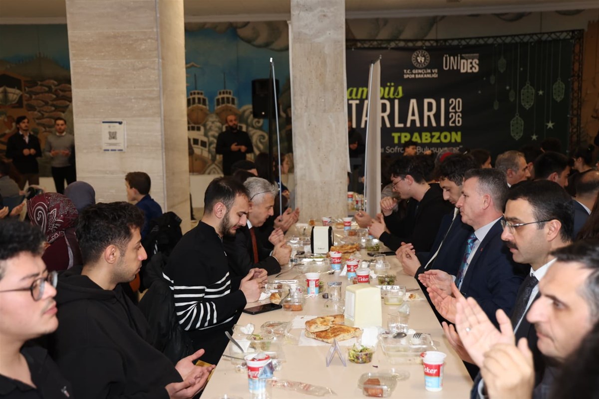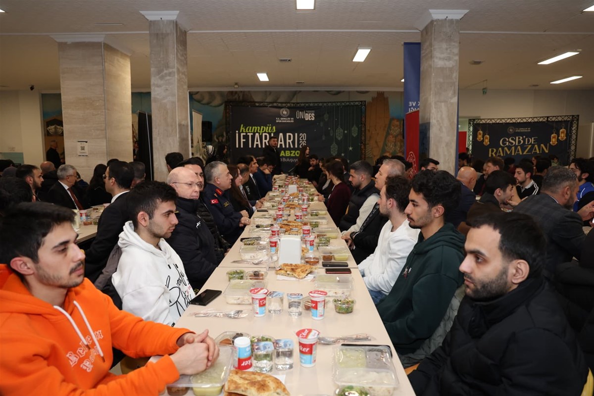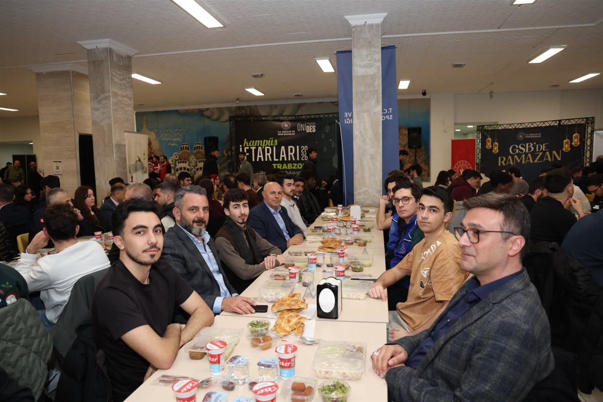 Trabzon Gençlik ve Spor İl Müdürlüğü tarafından Ramazan ayının manevi atmosferinde Karadeniz Teknik Üniversitesi kampüsünde düzenlenen iftar programında gençler ve protokol üyeleri aynı sofrada buluştu.